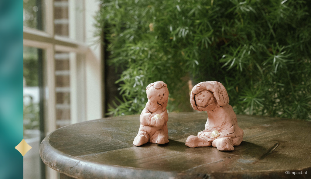 Kijk mam, dit ben ik! Voorzichtig liep mijn dochter naar binnen met in haar handen een kleipoppetje. En kijk … ik glans als een parel!…